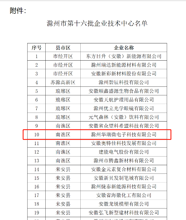 近日,滁州市經(jīng)濟(jì)和信息化局公布了滁州市第十六批企業(yè)技術(shù)中心名單通知,華瑞微榮列榜單,成功通過滁州市企業(yè)技術(shù)中心認(rèn)定。